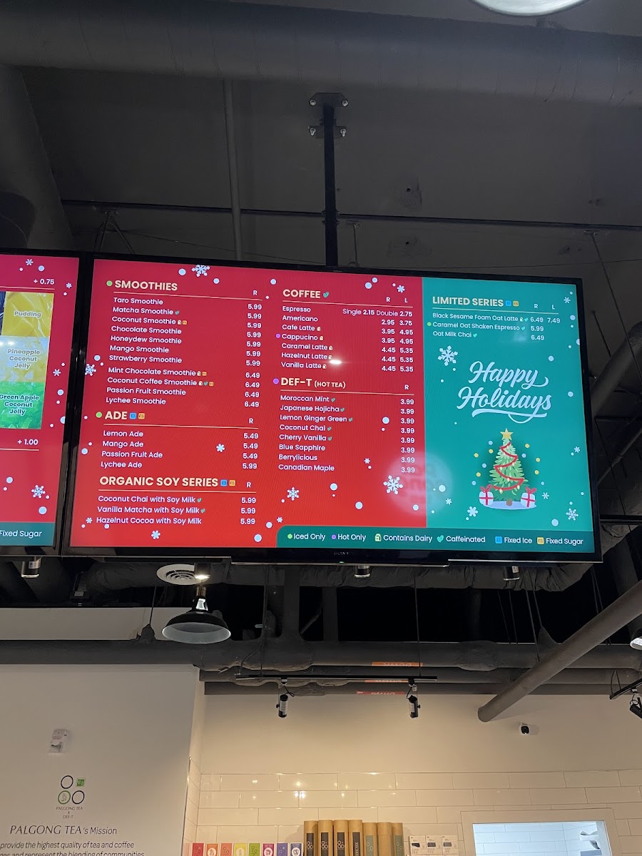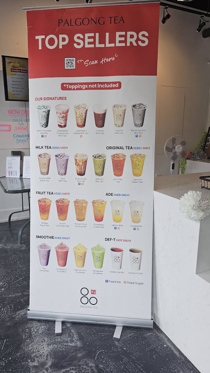 From a reviewer’s perspective, Palgong Tea Brantford offers a diverse and enticing menu that balances classic flavors with creative twists. Their Limited Series (Oat Milk Tea Series) features options like Black Sesame Foam Oat Latte, Oat Milk Chai, and Caramel Oat Shaken Espresso, appealing to those seeking plant-based alternatives. The Ade selection, including Lychee Ade, Lemon Ade, Mango Ade, and Passion Fruit Ade, delivers refreshing, fruity options, while the Def-T lineup such as Berrylicious, Japanese Hojicha, and Canadian Maple Lemon Ginger Green offers a sophisticated tea experience. Seasonal specialties like the Summer 2024 (Yuzu Series) highlight Yuzu Hot Tea, Yuzu Ade, Sunset Yuzu Smoothie, and Golden Yuzu Smoothie, perfect for bright, summery sips. Dessert lovers are well catered to with Double-Baked Sweet Rusk and playful Cake Pops, alongside the LoveMeSweet Cheesecake range featuring Matcha Dante, Tiramisu, Original Dante, Cookies 'N' Cream, Matcha Tiramisu, and more. Coffee enthusiasts can enjoy familiar favorites like Vanilla Latte, Americano, Café Latte, Cappuccino, and Caramel Latte. Signature drinks, including Strawberry Cheesecake Milk Tea, Mint Chocolate Milk Tea, Hojicha Milk Tea, Tiramisu Milk Tea, and Jakeman's Maple Milk Tea, stand out for their indulgent, dessert-inspired flavors. Traditional teas are also available with Earl Grey Tea, Palgong Black Tea, Oolong Tea, and Jasmine Green Tea, while the Def-T Can collection offers portable options like Blue Sapphire, Cherry Vanilla, and Japanese Hojicha. Fruit teas, including Lemon Tea, Lychee Tea, Mango Tea, Passion Fruit Tea, and Strawberry Tea, provide light, refreshing choices. The menu also includes Soy Milk Tea Series like Hazelnut Cocoa With Soymilk, Coconut Chai With Soymilk, and Vanilla Matcha With Soymilk, alongside smoothies such as Honeydew Smoothie, Taro Smoothie, Mango Smoothie, Matcha Smoothie, and Chocolate Smoothie. For those with a sweet tooth, the Macarons & Cake Box-offering 5- or 9-piece sets and flavors like Double Raspberry Macaron, Earl Grey Macaron, and Strawberry Crunch Macaron-is a delightful choice. Rounding out the experience, merchandise such as Jakeman's Maple Leaf Lollipop, Palgong Tea Glass Tumbler, Palgong Tea Infuser, and Palgong Tea Silicone Cup make the visit both flavorful and memorable. Overall, the menu at Palgong Tea Brantford impresses with its variety, creativity, and attention to both classic and seasonal offerings.